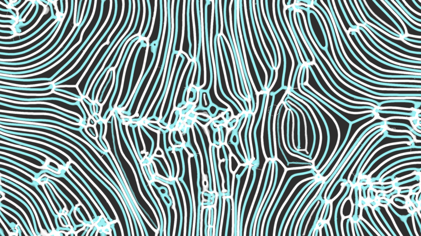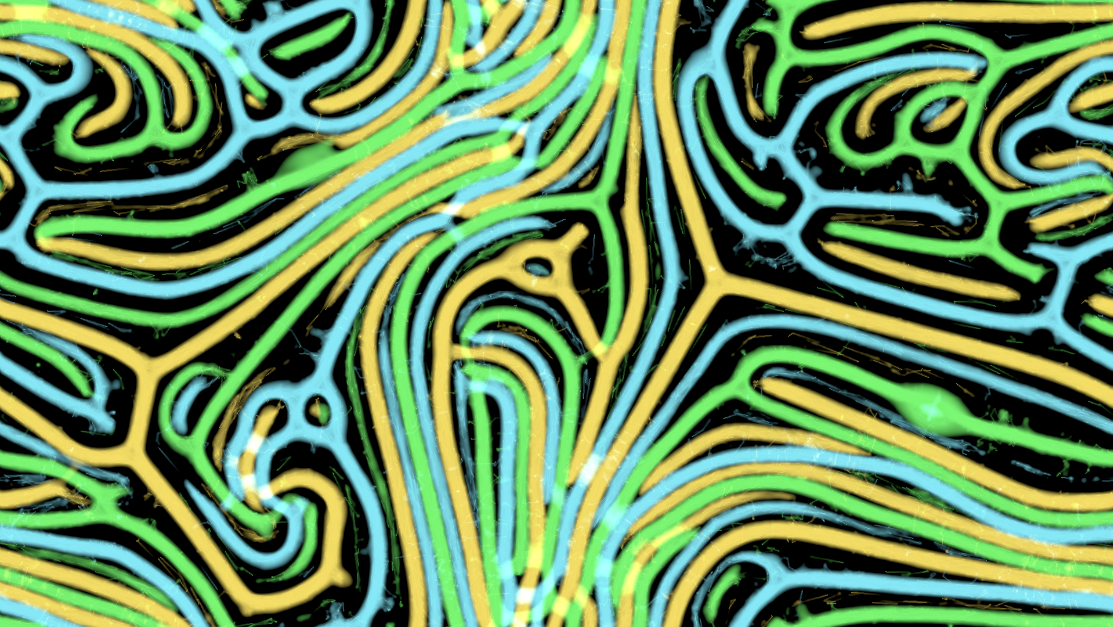 A "slime" simulation "game" that runs on the GPU able to simulate thousands of agents with configurable parameters leading to very stunning simulations.